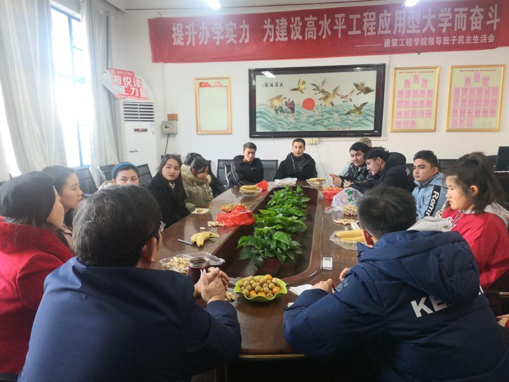 接着,同学们逐一进行自我介绍,并就个人在学习、生活上的情况、遇到的困难和问题、今后的打算等方面与老师们交流和探讨。建环1901班买尔旦说到要团结友爱、互帮互助,尊师恳学、严于律己、争做一名优秀的新时代大学生。工管1801班合力力介绍了自己在大学期间在学习、生活上的收获,他代表少数民族学生感谢学院的亲切关怀和真诚帮助,感谢学院用心用情的为少数民族学生服务。建环1702班开得丽亚,针对期末考试的方法和经验与同学们进行分享交流,她分析了在考试过程中的要点把控、心态调整等问题,同时她希望学弟学妹们在奋斗的路上走向成功。