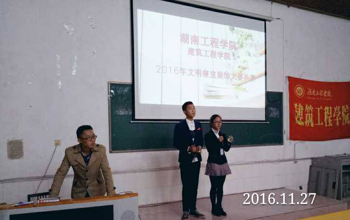 本次文明寝室装饰大赛由建筑工程学院团学会纪检部承办,于11月11日-18日进行了初赛,共有17个寝室进入了决赛。进入决赛的寝室首先展示相关介绍寝室的VCR,再由全寝人员一起进行才艺表演。