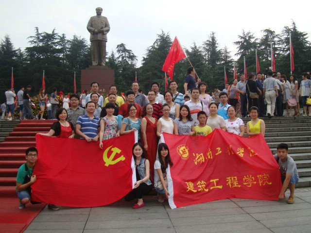为深入开展党的群众路线教育实践活动,进一步加强党员干部革命传统教育,弘扬革命精神,7月1日,在中国共产党建党93周年之际,建筑工程学院党总支组织教工党员赴韶山开展党的群众路线红色主题教育实践活动。在为期一天的红色之旅中,教工党员们先后参观了毛泽东故居、毛泽东铜像广场等爱国主义教育基地,观看了大型实景剧《中国出了个毛泽东》。