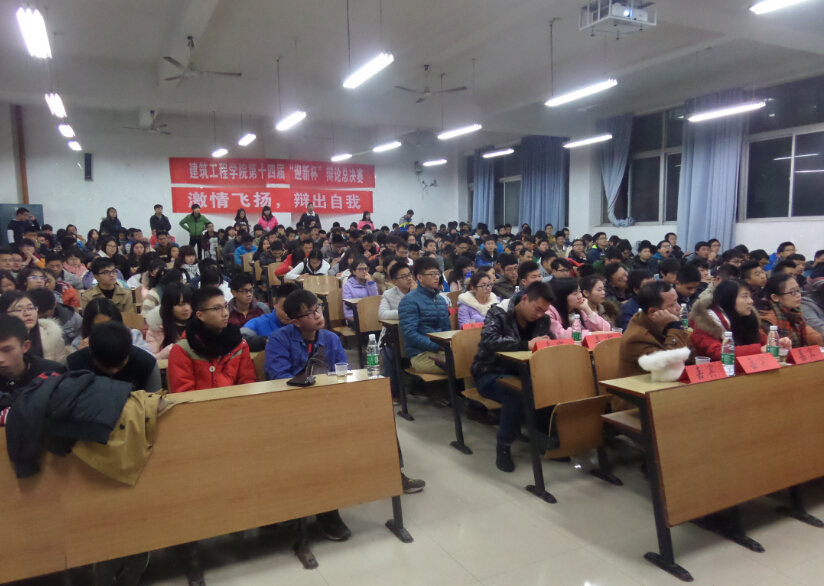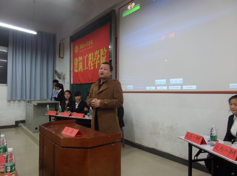 为了丰富同学们的课余活动,让同学们感到大学生活的丰富多彩,增强大家的语言组织能力,锻炼同学们逻辑思维与临场应变能力,培养探索精神与团队合作精神,建筑工程学院团总支学生会学习部承办了第十四届“迎新杯”辩论赛,经过一个月的激烈角逐,两个班级从16个班级中脱颖而出。12月13日晚七点,辩论赛决赛在湖南工程学院主校区D栋101教室打响,出席本次决赛的领导有建筑工程学院学生工作办公室主任李佳老师,建筑工程学院学生工作办公室刘熹微老师。
