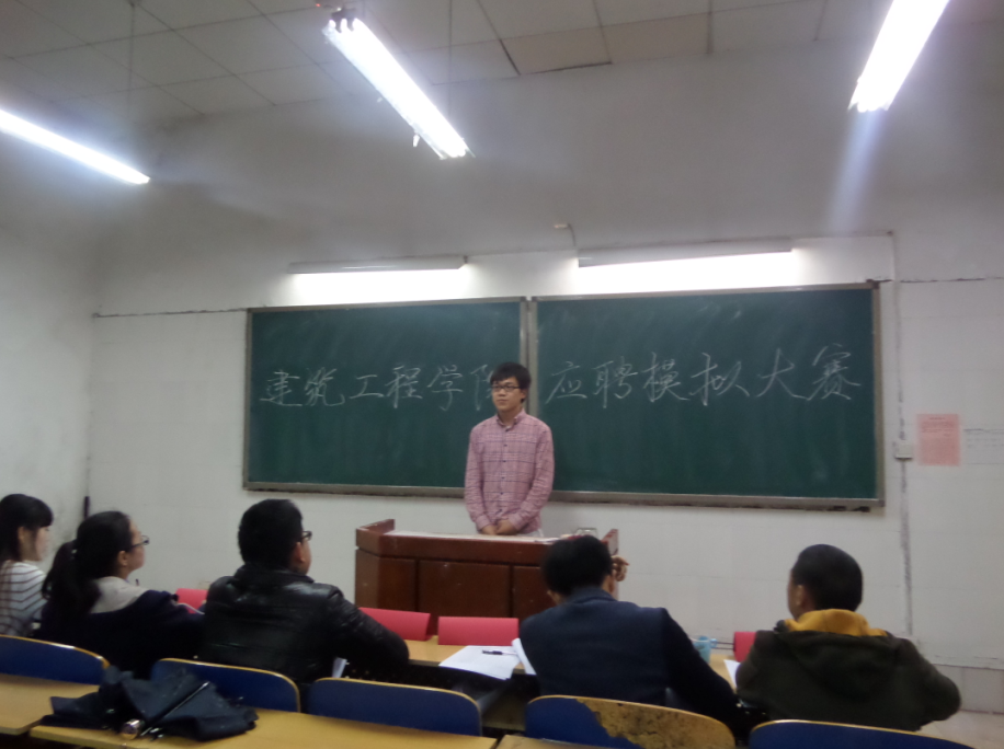 在红楼110室举办了应聘模拟大赛。本次初赛将选出两名优秀选手参加校级应聘模拟大赛。莅临此次活动的有建筑工程学院团总支副书记李润泽、副主席刘曼、就业协会会长金枝、口才协会会长李小天、副会长张涛及其余各部门部长等。