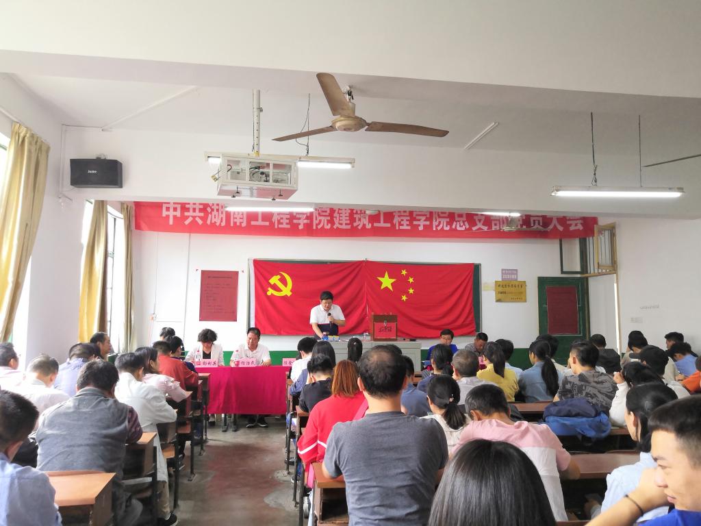 2019年10月11日下午四点,中共湖南工程学院建筑工程学院总支部党员大会在四教209召开。原院党总支书记谢治民、原院党总支副书记单山鸣、现党委书记陈金陵、建筑工程学院副院长彭利英、副院长陈晓,副书记梁桥、以及全体老师党员和学生党员参与此会。