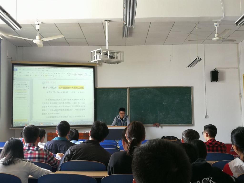 5和6部分的内容,学习题目为筑牢奋进新时代的宪法根基和充分体现党和国家事业发展新成就新经验新要求两个方面,关于新宪法的内容。翻开新修订的宪法,新时代坚持和发展中国特色社会主义的总目标、总任务、总体布局、战略布局鼓舞人心,未来中国的发展方向、发展方式、发展动力、战略步骤、政治保证等清晰鲜明,引起了学生党员们的共鸣。两位书记强调,全体党员要采取集中学习和自主学习相结合的方式,积极利用网络平台,创新形式开展学习交流,增强学习内容的丰富实效性。