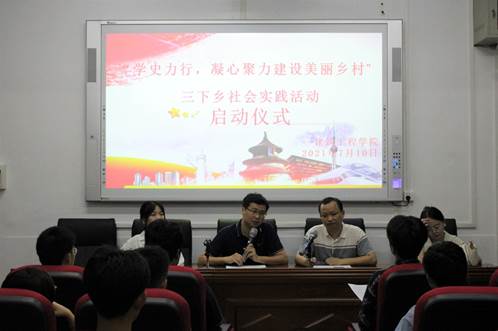 为响应团中央号召全国大学生开展“三下乡”社会实践活动,2021710日晚730分,湖南工程学院建筑工程学院在三教304举行了以“学史力行,凝心聚力建设美丽乡村”为主题的三下乡社会实践活动启动仪式。参加启动仪式的有:建筑工程学院党委副书记梁桥,学生工作办公室主任李佳,团总支书记周洳帆,辅导员朱笑雨以及实践团的成员们。