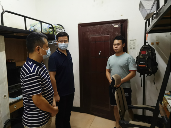2021年8月4日晚,为了解暑期留校学生防疫、住宿情况,关心学生健康与安全,建筑工程学院党委书记张宏、副书记梁桥带领辅导员一起深入学生宿舍看望留校学生。