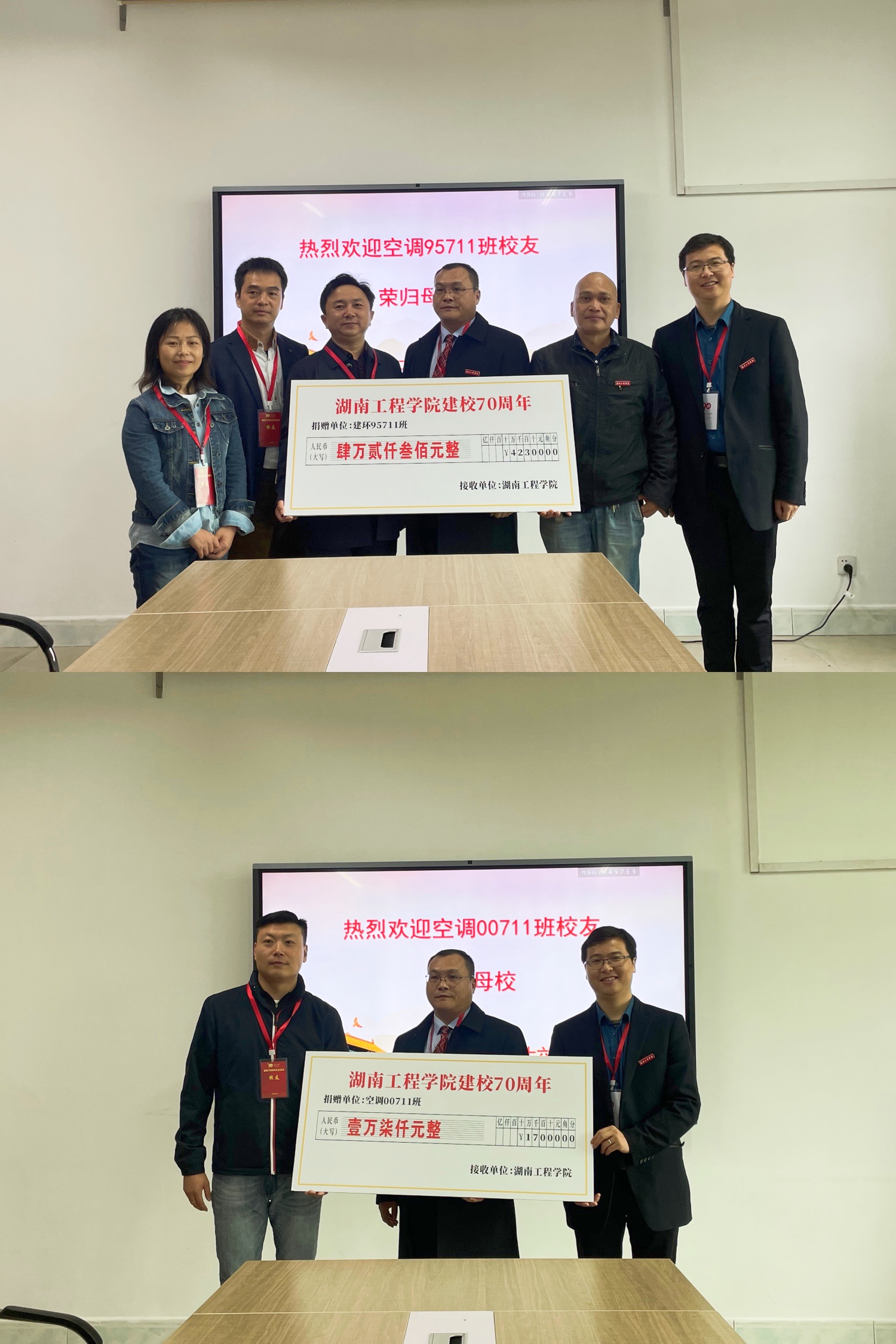 此次捐献仪式在校友及老师们的欢声笑语中结束,校友们纷纷表示,母校是培养自己成长成才的地方,在母校的学习生活终身难忘,因能为母校的发展献力而深感荣幸,希望能与湖工、建工携手创造更美好的未来!