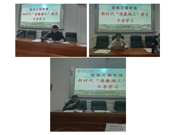 为了对标清廉湖南建设要求,立足学校实际,扎实开展“清明政风、清净校风、清正教风、清新学风”四大行动,逐步建设“崇清尚廉”的清廉校园。11月29日下午,学院全体教职工在三教304会议室开展学习了“清廉湖工”建设专题学习之冬季篇的学习。