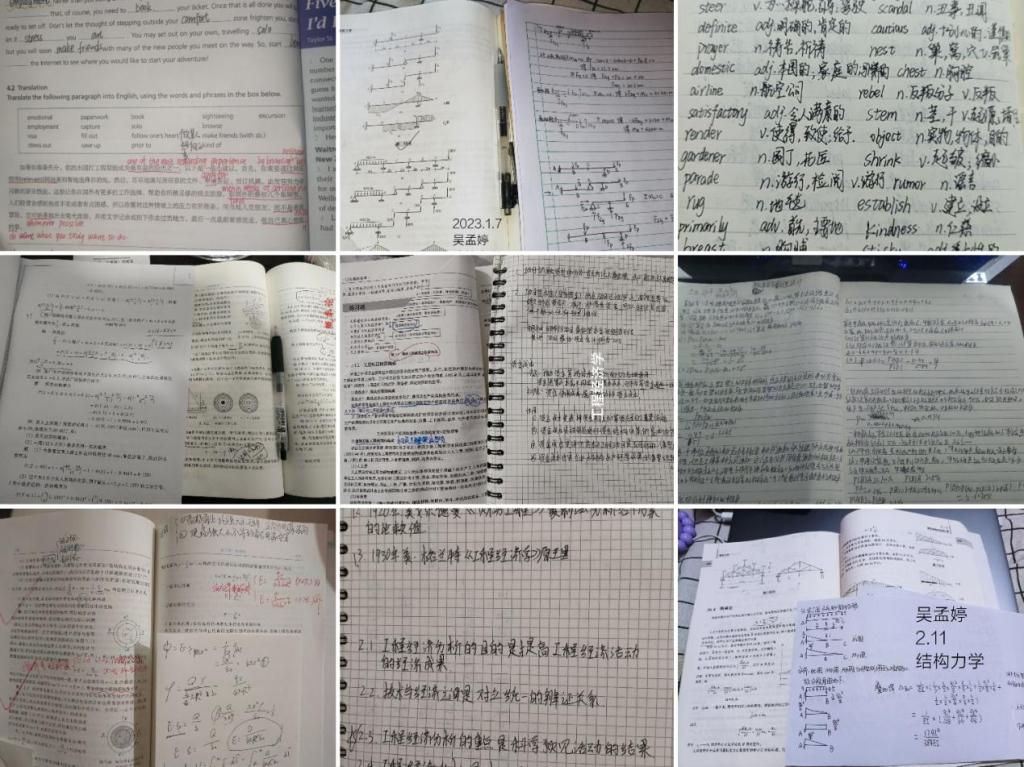 本次活动依托线上QQ群“打卡”进行,活动形式自由灵活,同学们自由选择学习时间、场地,每天在群里完成一定时间的打卡并上传学习笔记。活动自2月1日开始,于2月18日结束,共计18天,活动一经发出就受到同学们的积极响应和广泛参与。工程管理2102班的吴孟婷同学持之以恒的每天发布自己的学习笔记,学习的同时把这一份成果与快乐也分享给身边的人;建筑学2101班的钟玉玲同学利用假期学习计算机制图软件技能,在打卡圈子里分享交流学习心得。