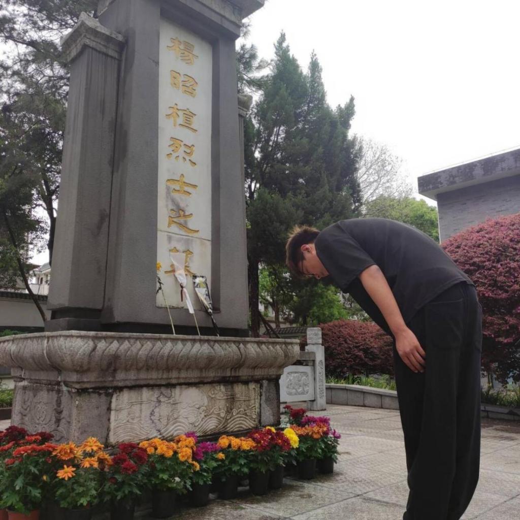 首先,周洳帆在纪念碑前给全体成员开展了“伟人故里 薪火相传”主题团课,“壮烈牺牲的杨昭植烈士,在面对敌人的竹鞭抽打,用炭火烧红的铁桶烘烤,被木杠压断其双腿,始终未能屈服。”“年仅25岁的杨昭植在湘潭县署前坪英勇就义,就义前曾给表兄留下遗书:愿后死者,为共产主义奋斗到底!”同学们纷纷表示:要继承先辈们的遗愿,传承发扬革命精神,奋发有为,争取成为社会主义合格建设者和可靠接班人。