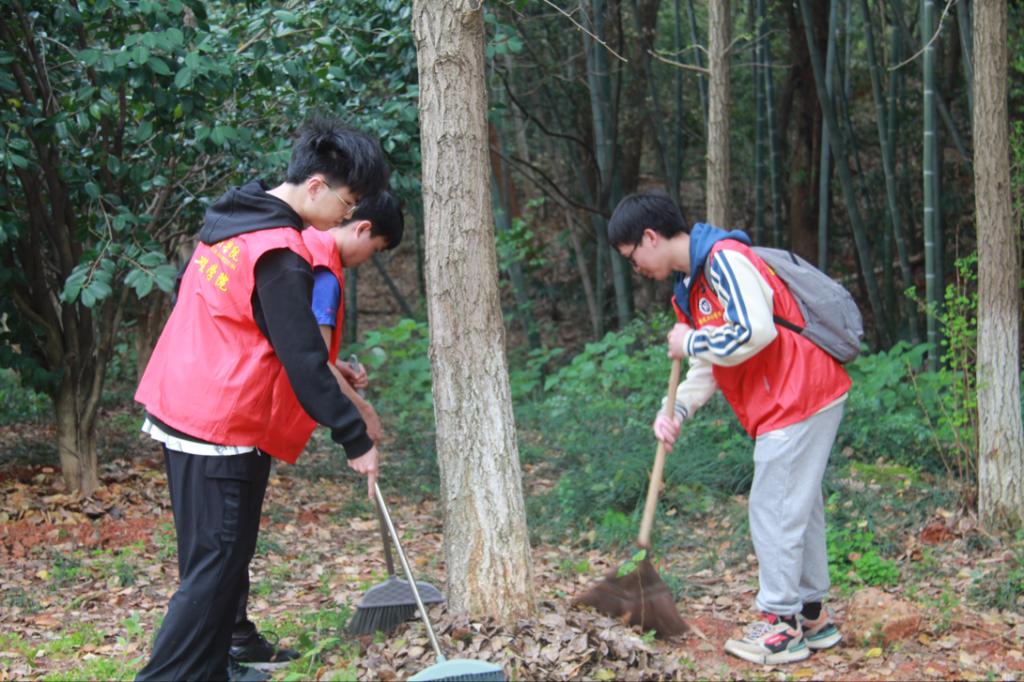 每一次弯腰,每一滴汗水都传递着奉献、友爱、互助、进步的志愿服务精神和爱校如家的感恩情怀。在大家的共同努力下,梅花山道路整洁一新。清扫结束后,同学们还来到我市重点保护文物“周瑞龙父子墓”进行了清扫。