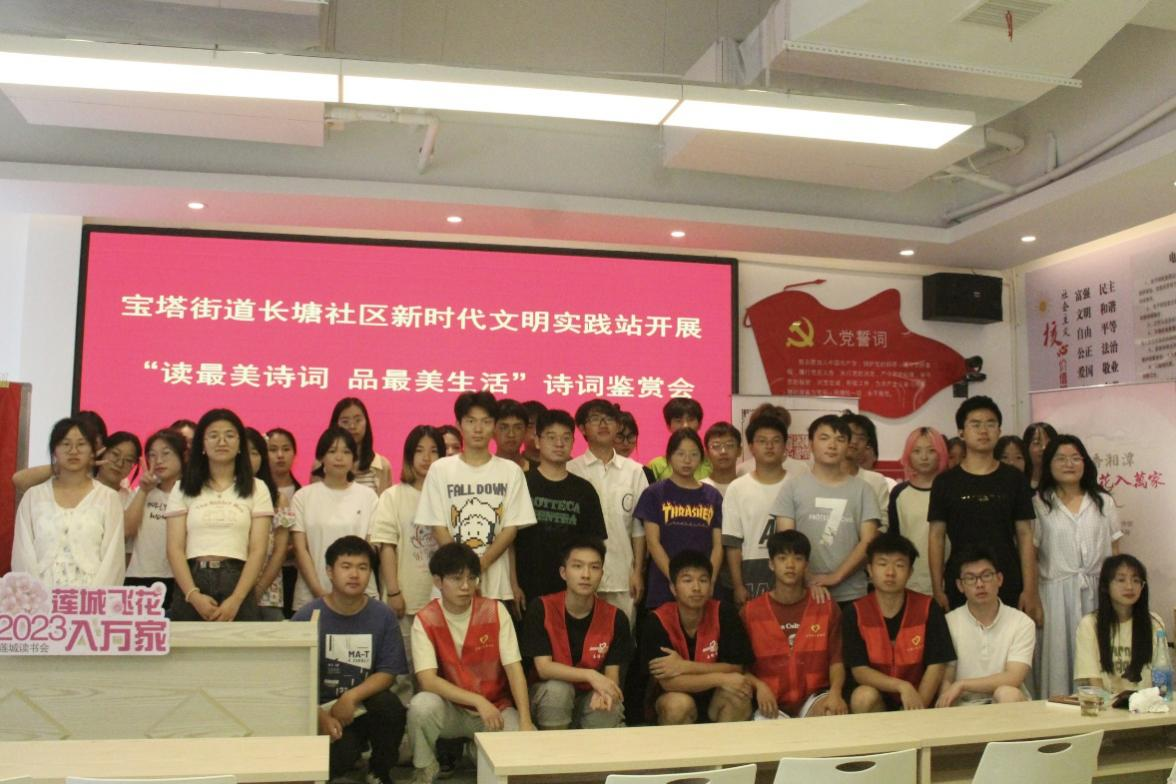 志愿服务团(“清椿社”)联合湘潭市长塘社区,在社区党群服务中心开展以“读最美诗词,品最美生活”为主题的诗词鉴赏活动。
