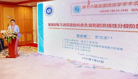 在第十六届全国流变学会议会上,张永军博士作了题为“重复加载下沥青混合料永久变形的非线性分数阶黏弹塑性分析”的专题报告,报告详细介绍了其在纤维增强材料对混合料路用性能影响规律的研究成果及路面车辙的流变学表征方法的新探索,这些是解决高等级路面耐久性问题的重要课题。会后张博士与会场专家交流了新型路面材料的制备及流变性能测试、表征的相关问题。