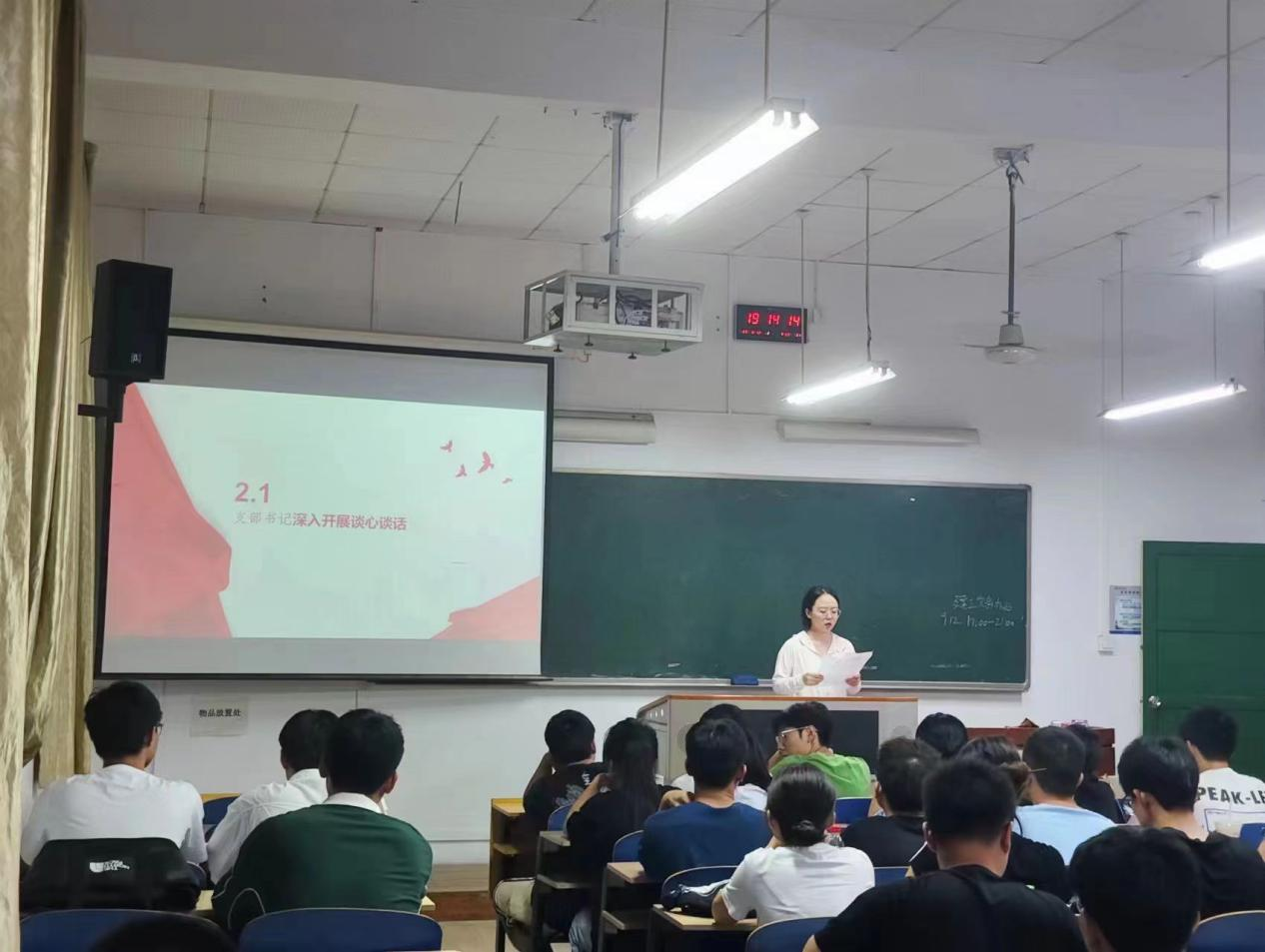 本次生活会以“学习贯彻习近平新时代中国特色社会主义思想”为主题,会议伊始,主持人向参与组织生活会的学生党员介绍了本次组织生活会的目的和安排。随后,学生党支部书记就习近平总书记在全国组织工作会议上对党的建设和组织工作作出的重要指示以及习近平总书记考察湖南重要讲话和重要指示批示精神进行领学。