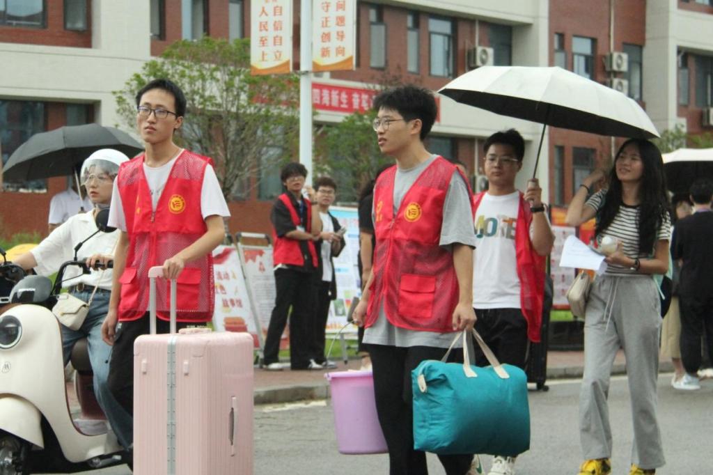 在滨江校区进行2023级新生迎新工作。迎新志愿者们是由亚洲av
