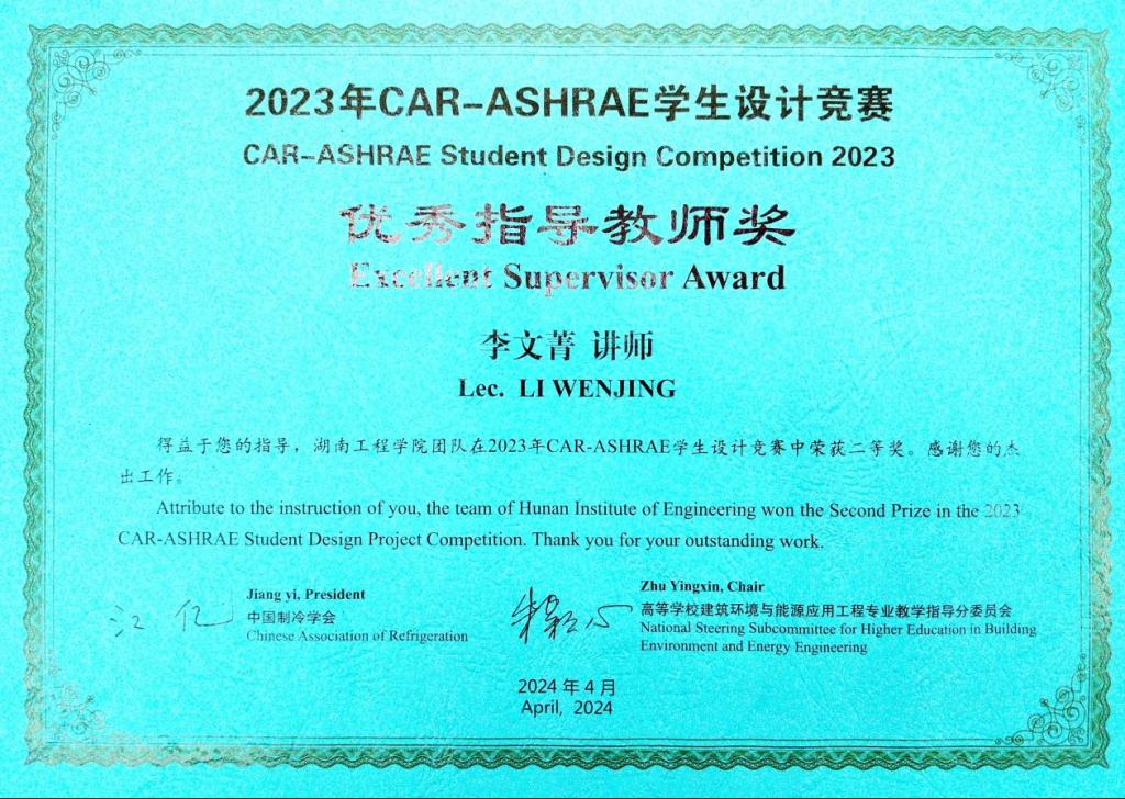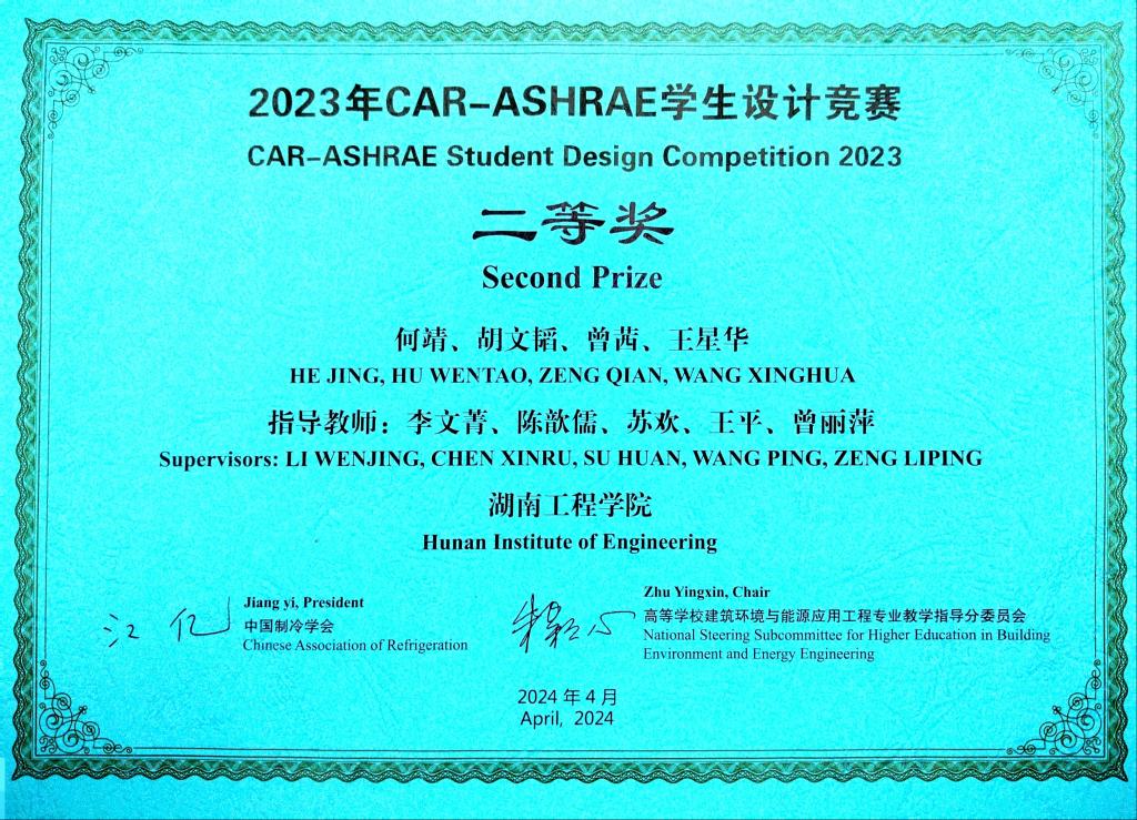 CAR-ASHRAE学生设计竞赛在2009年由中国制冷学会、美国供热制冷空调工程师学会(ASHRAE)和教育部高等学校建筑环境与能源应用工程专业教学指导分委员会共同发起,旨在推进我国建筑环境与能源应用工程专业教学改革,提高本专业学生实际设计水平,发现和培养行业后备人才,促进国际交流,目前已成为同类竞赛中最具代表性和影响力的赛事。