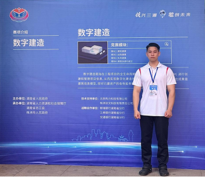 学子谭猛在指导老师汤丹的精心指导下,在数字建造赛项中脱颖而出,获优胜奖。