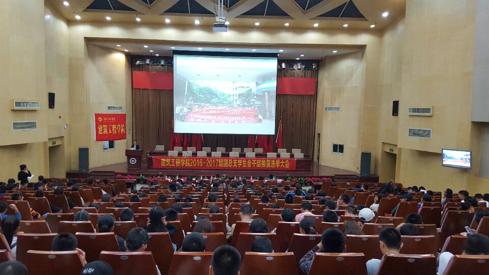 2016年10月17日至18日晚上7点,湖南工程学院建筑工程学院于图书馆一号报告厅召开2016-2017届团总支学生会干部换届选举大会,出席此次换届大会的有建筑工程学院党总支副书记单山鸣、学生办公室主任李佳、团总支书记唐喜梅、辅导员刘熹微和郭文辉,以及建筑工程学院团总支学生会主席团全体成员、参加竞选的干部干事以及全体16级同学。