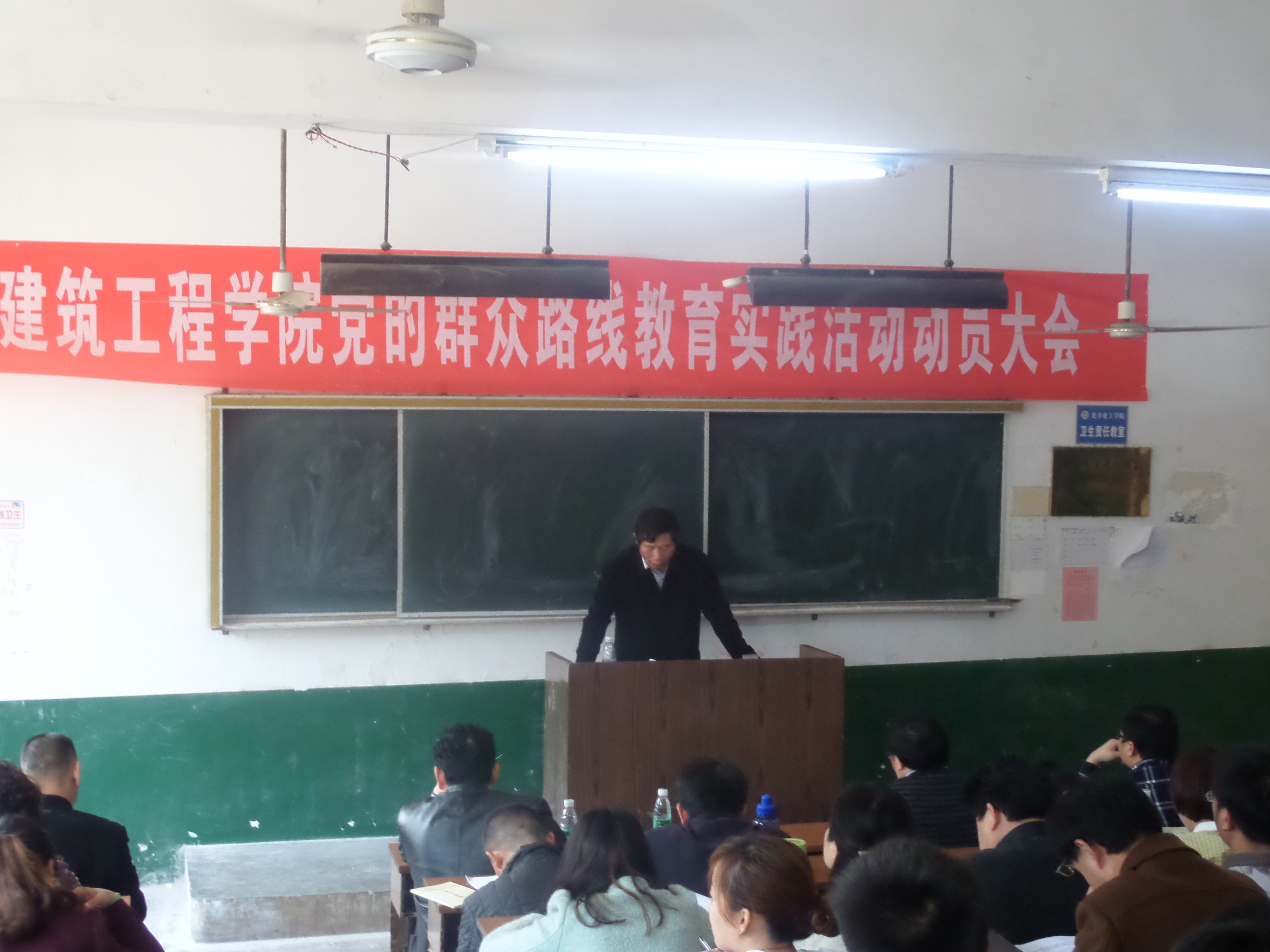建筑工程学院党总支书记李小华做了群众路线教育实践活动动员报告,并公布了具体的实施方案。李书记对建工的办学历程和成效进行了回顾,对本次活动的指导思想、活动范围、活动目标做了详细阐述,并指出要以“为民、务实、清廉”为主要内容,按照“照镜子、正衣冠、洗洗澡、治治病”的总要求,集中解决院领导班子和领导干部“四风”方面存在的突出问题,解决关系广大师生员工切身利益的问题,以实实在在的效果取信于师生员工。根据学校的总体部署,建筑工程学院的教育实践活动将重点抓好“学习教育、听取意见”、“查摆问题、开展批评”、“整改落实、建章立制”三个环节。李书记强调,要注重建全改正作风的长效机制,要开展教育实践活动,落实领导责任,坚持求真务实,做好统筹兼顾。