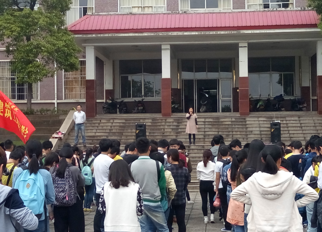 2016年4月27日中午十二点半,建筑工程学院在主校区(北)学海花园成功进行了四月份月讲评,学院党总支副书记单山鸣书记以及学生工作办公室主任李佳老师,团总支书记唐喜梅老师出席了本次月讲评,重点强调了五一出行的安全和寝室卫生等问题。