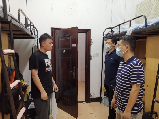 2021年8月4日晚,为了解暑期留校学生防疫、住宿情况,关心学生健康与安全,建筑工程学院党委书记张宏、副书记梁桥带领辅导员一起深入学生宿舍看望留校学生。