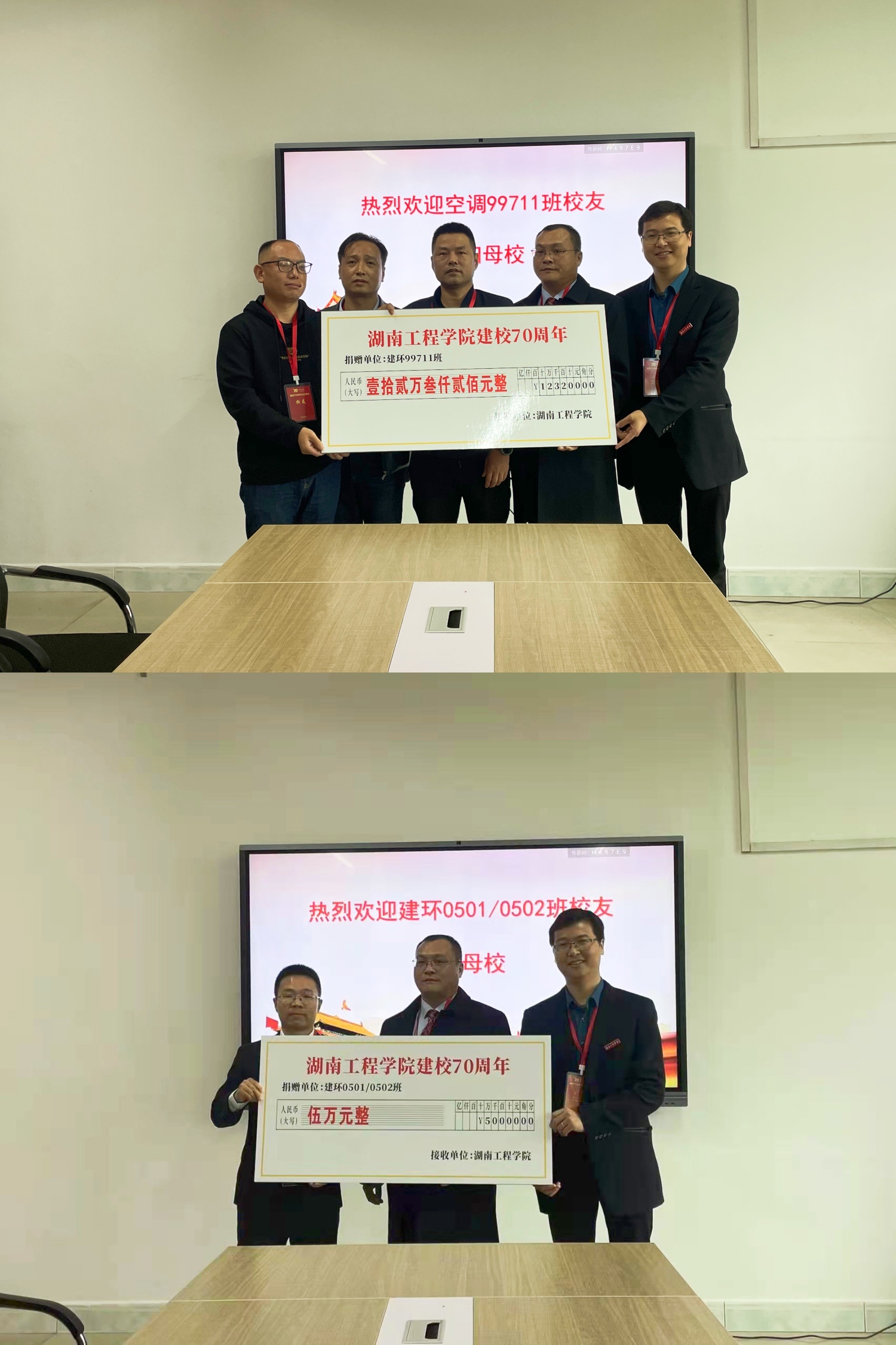 此次捐献仪式在校友及老师们的欢声笑语中结束,校友们纷纷表示,母校是培养自己成长成才的地方,在母校的学习生活终身难忘,因能为母校的发展献力而深感荣幸,希望能与湖工、建工携手创造更美好的未来!