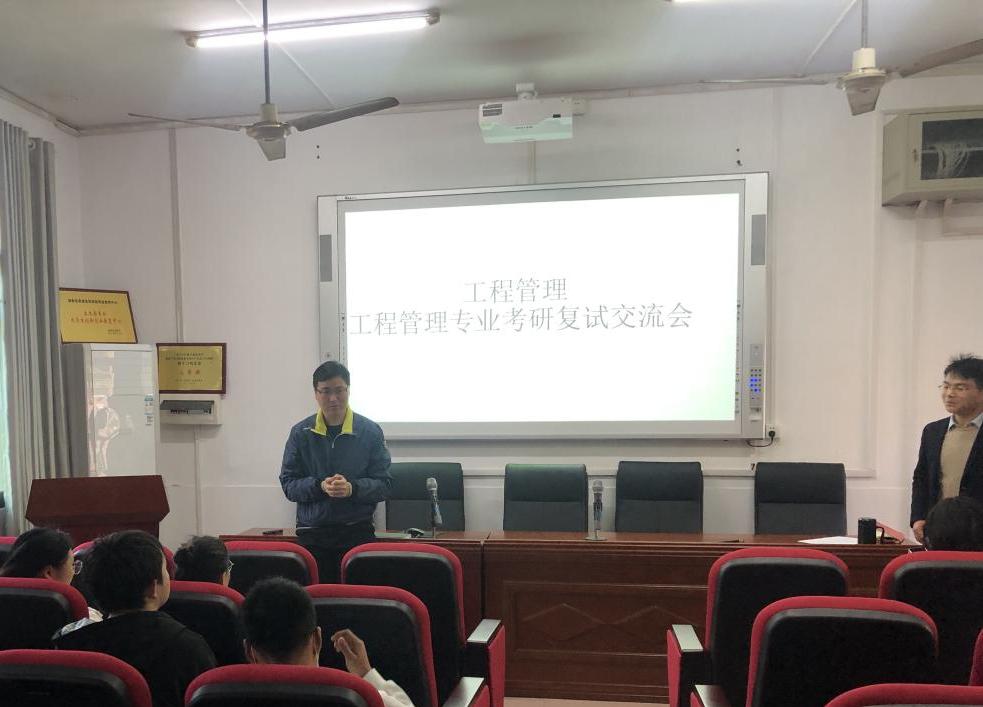 工程管理教研室邀请了学院副书记、硕士生导师梁桥就考研复试所需面临的各类困难和疑惑进行面对面交流,工程管理教研室部分老师参加。梁书记从联系导师、复试笔试准备、英语面试及导师面试等四个方面为学生提供了备考建议,并以自身面试经历为例,讲解了复试常见问题及解决方法。教研室汤丹、梁莎莎两位老师就复试形象及礼仪、面试问题解答技巧给出了指导性意见,也为学生解答了调剂相关问题。最后,进行了一对一交流答疑环节,与会学生均表示感受到了来自学院的关心,收获满满,期待复试获得好成绩。
