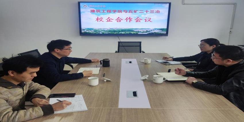 与湖南未来无忧教育科技有限公司(五矿二十三冶旗下“双创”项目)校企合作会议在建筑工程学院3楼309会议室召开。湖南未来无忧教育科技有限公司执行董事邱智军和五矿二十三冶一公司人力资源部部长舒悦明子,学院党委副书记梁桥、土木教研室主任刘兆丰及就业专干谭杰参加本次会议。