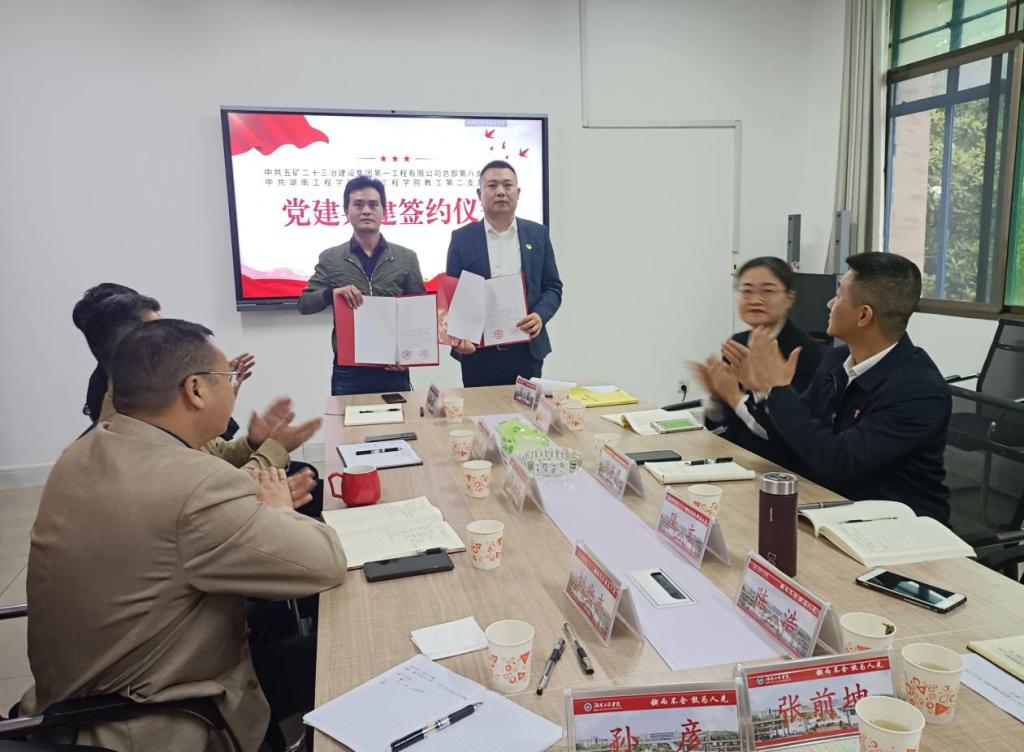 教工第二支部委员会与五矿二十三冶建设集团第一工程有限公司总部第八支部委员会联合开展了“党建校企联合、携手共建共赢”活动。五矿二十三冶一公司纪委书记、工会主席罗海等一行七人及亚洲av