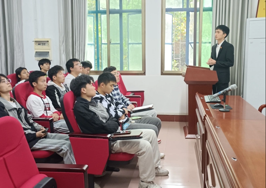 一公司团委书记陈浩在分会场为我院学生作了以《习近平总书记在庆祝建团100周年大会上的重要讲话精神》为主题的党课。