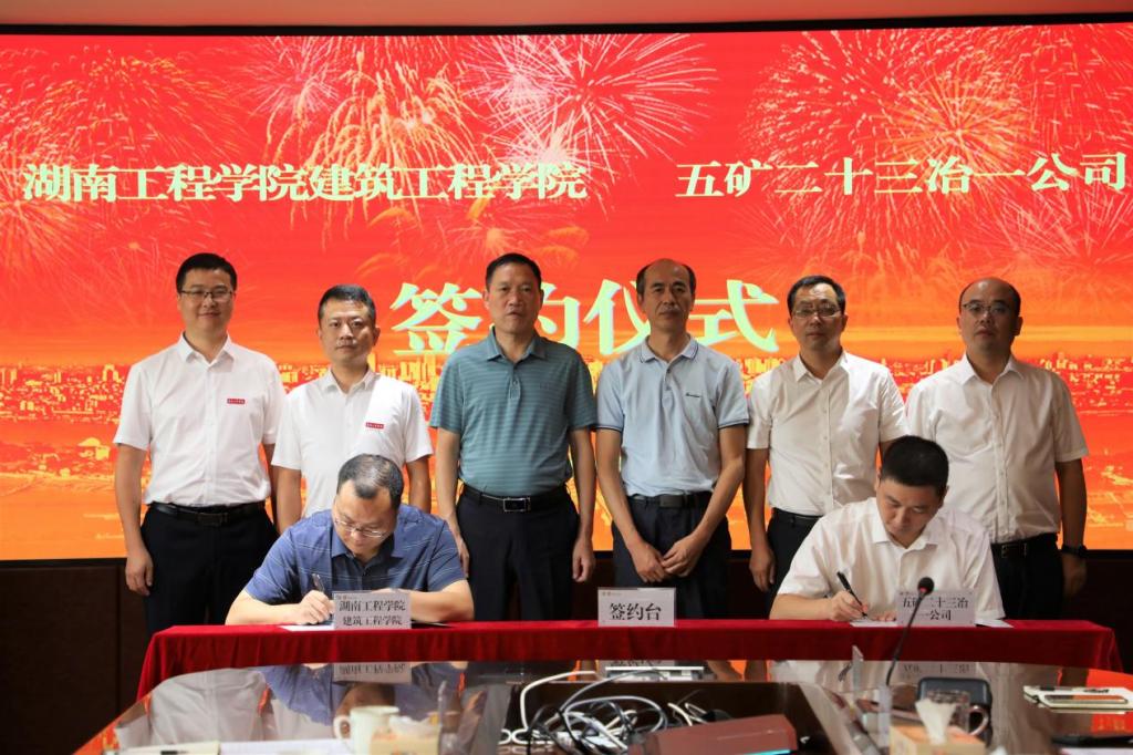 与五矿二十三冶建设集团第一工程有限公司签署校地产学研合作协议。院党委书记张宏、院长李小华、党委副书记梁桥等出席签约仪式。