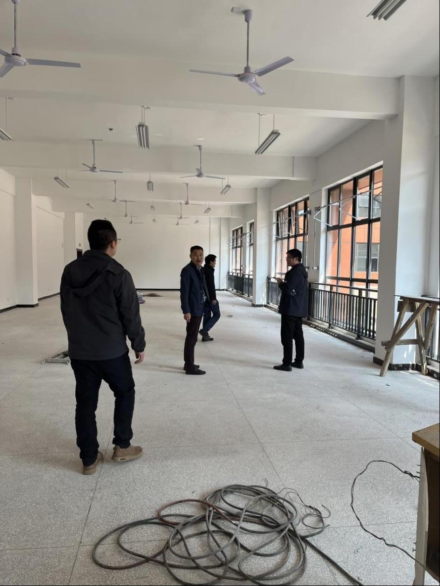 3月10日,实验室盘点器材期间,由实验教研室主任李盛南带队对建工新楼实地进行勘察,确保实验器材的落地问题。