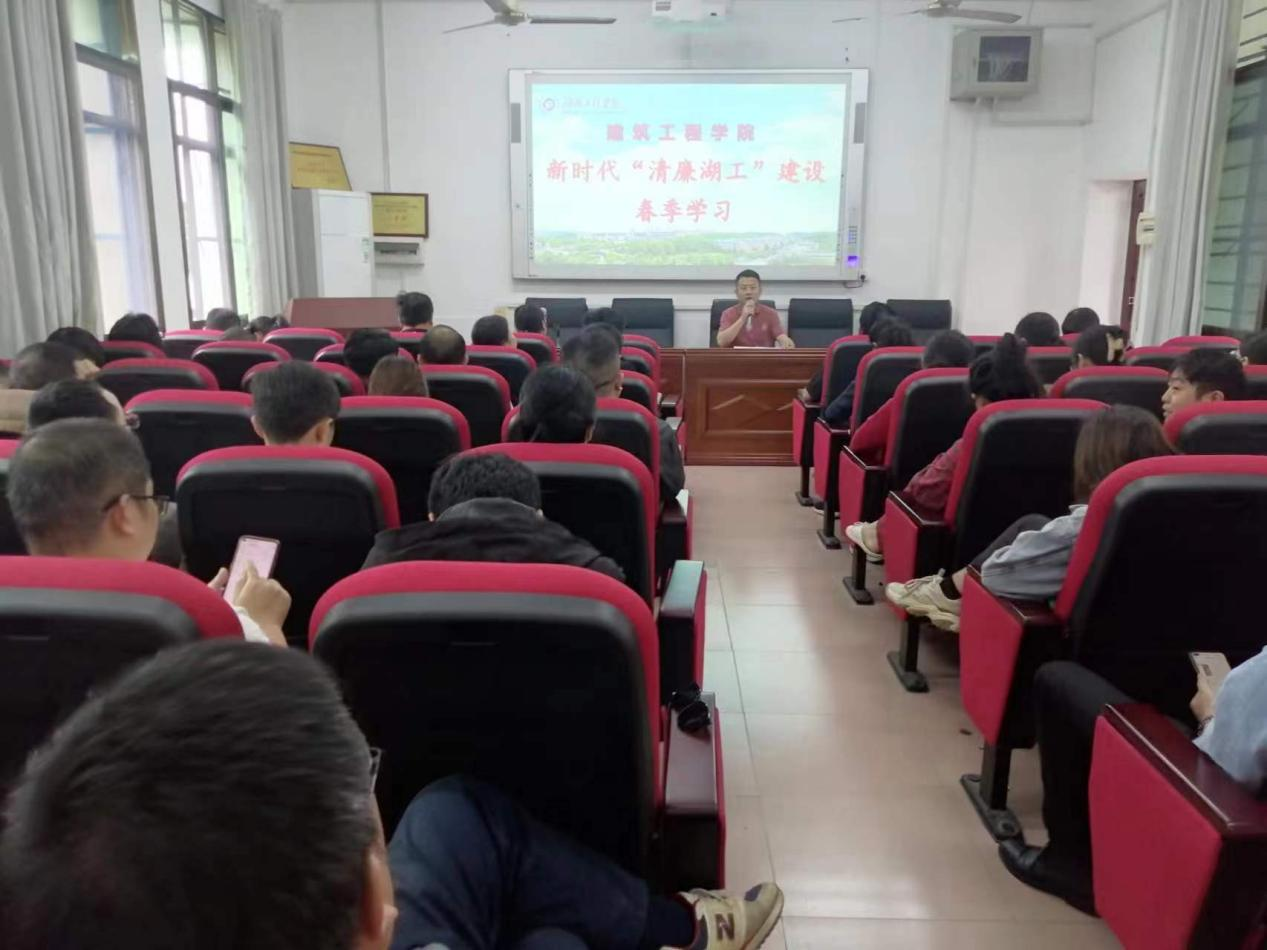 全体教职工参加新时代“清廉湖工”建设专题学习,在院党委书记张宏的带领下,学习了教育部印发《新时代高校教师职业行为十项准则》等文件。