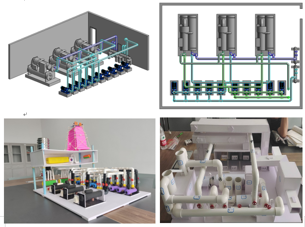 本次大赛共有三个制冷机房主题,分别是四教机房、华隆步步高空调机房、长沙国金大厦空调机房,以线下展示的方式开展,共计9组近70名学生提交了模型作品参与竞赛,共设有冷热源机房模型、末端模型、管网模型共三大板块,进行模型的原理表达、建模分析、创新阐述、模型展示的比拼。各组经过一周的时间完成了模型的制作,经历了材料的选取、系统图的绘制、三维建模等制作过程,围绕制冷机房的设计、优化、能源管理等方面,提交了众多富有创意的模型作品,充分展示了学生们在制冷机房相关领域的专业素养和创新精神。