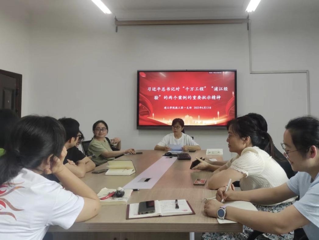教工第一党支部全体党员在支部书记王平的带领下,集中学习习近平总书记对“千万工程”、“浦江经验”的两个案例的重要批示精神。