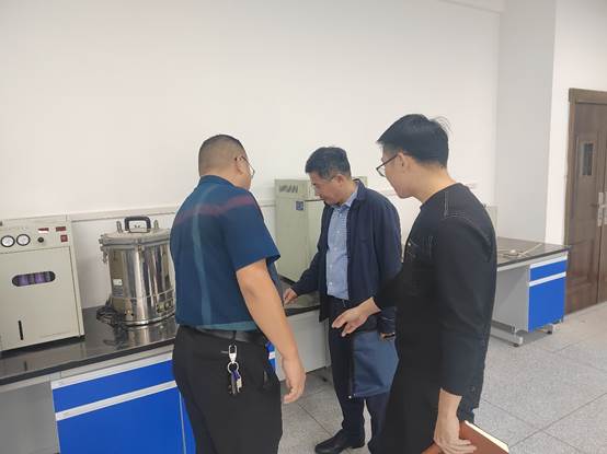 易兵首先实地考察了新建工楼的外围环境、教学设施、实验室建设等场地,详细了解新建工楼的建设和整体使用情况,逐间走访了学院的实验室,对实验设备的使用、实验教师的配备和教学等情况进行了具体指导,他指出要充分利用好现有教学、实验设备等资源,提高教学质量,服务于学生成长成才的需要。