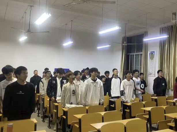 在齐唱《光荣啊,中国共青团》后,团日活动正式开始。本次团日活动有三个阶段,第一阶段由团支书领学了关于习近平总书记五四青年节对全国广大青年寄语,深刻感悟讲话精神。第二阶段主持人以主讲ppt和看视频形式学习新时代青年在各行各业奋斗中展现青春作为、贡献青春智慧的故事。最后阶段组织大家共同观看了关于生命安全的相关视频。