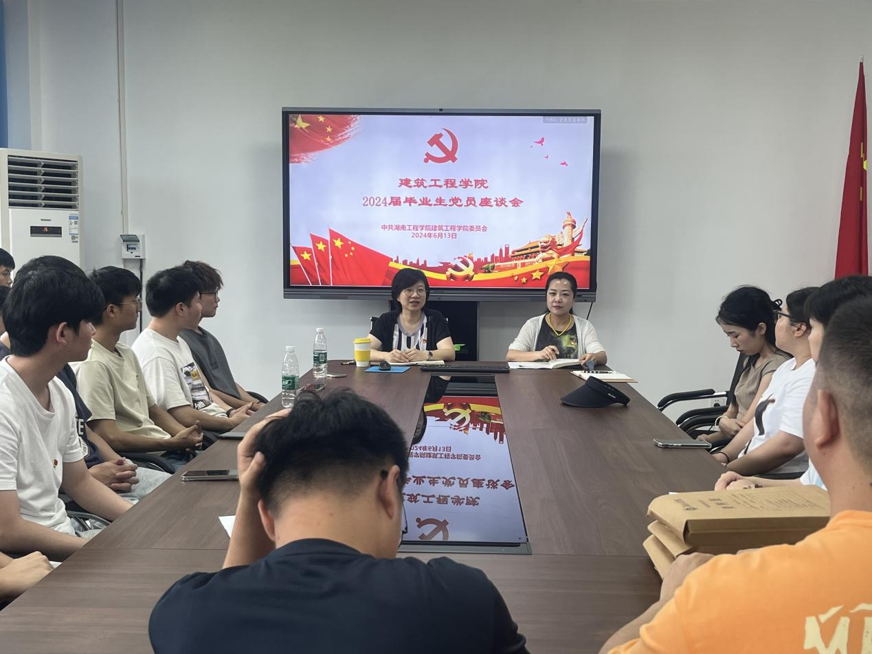 在建工楼318召开2024届毕业生党员座谈会。学院党委书记施晓蓉、党委副书记罗卫、党务老师朱笑雨及毕业生党员代表出席会议。
