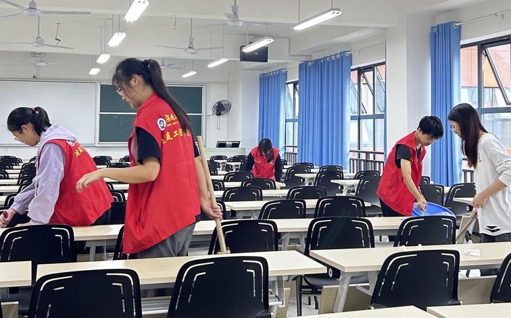 活动期间,志愿者们对建工楼的公共环境及教室卫生进行了全方位的清扫。负责老师周洳帆提前组织了一场细致的培训,明确了任务分工,让同学们能够按楼层、按教室有条不紊地高效完成清扫任务。此次清扫重点聚焦每一个卫生死角,彻底清除教室内的残留垃圾,严格的责任落实确保了清扫工作的效率与质量。