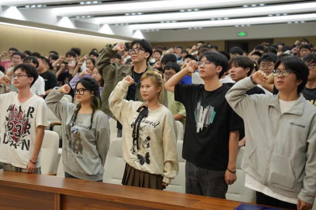 新一届团总支副书记李俊杰同学代表新一届团学干部进行了表态发言,他表示:坚定政治立场,树牢服务意识,用实际行动践行“锲而不舍、敢为人先”的校训精神,为学院团学工作高质量发展续写新篇章。李俊杰带领新一届学生联合组织成员进行了集体宣誓。