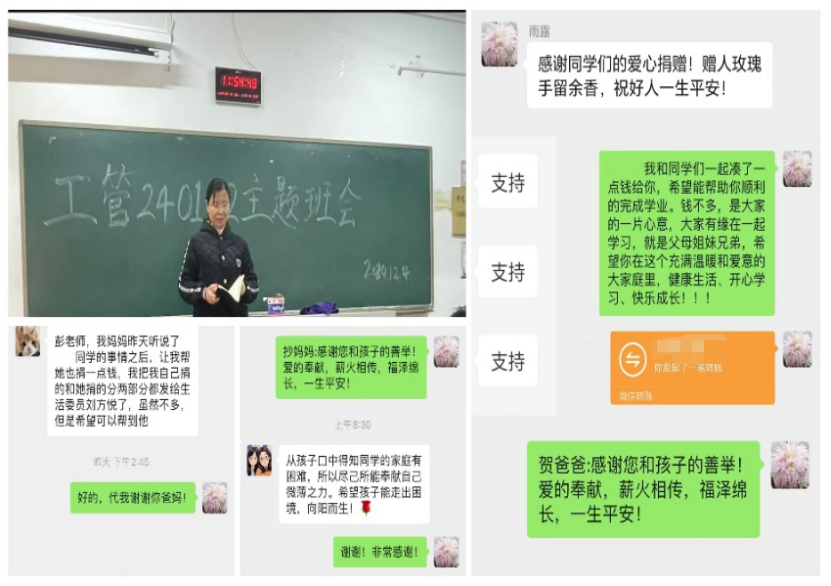 此次班级捐款活动,充分展现了工程管理2401、2402班团结互助的良好班风。同学们用实际行动诠释了关爱与担当,不仅为邓同学提供了物质上的支持,更给予了其精神上的巨大鼓舞,让他有勇气和信心去战胜眼前的困难,向阳而生。相信这份爱心将永远在班级中传递,成为同学们成长道路上的宝贵财富,激励大家在未来继续秉持善良与友爱,共同书写更多温暖人心的篇章。