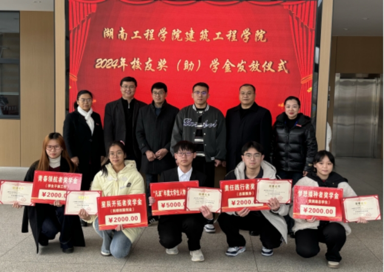 接着,唐星星宣读《关于2024年湖南工程学院建筑工程学院校友奖学金获奖名单》。受助学生代表谭合露上台发言,诚挚感谢学院与企业的支持,表明将以优秀校友为榜样,在学业上精益求精,以实际行动回报学校与社会。